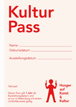 Inhaber*innen des Kulturpasses erhalten bei uns Freikarten für bis zu zwei Kinder und einem Erwachsenen. Im letzten Jahr gaben wir über 1000 Stück aus. Einen Teil dieser Kosten finanzieren wir mit Ihrer Werbung. Unsere Werbepakete bieten attraktive Gegenleistungen zu Preisen, die es Unternehmen jeder Größe ermöglichen, einerseits Kunst und Kultur zu fördern und andererseits unser Publikum auf ihr Unternehmen und ihr gesellschaftliches Engagement aufmerksam zu machen.